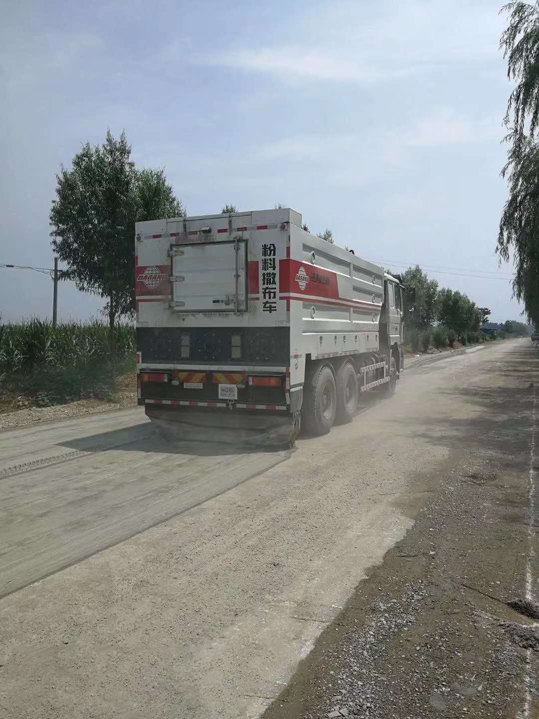 省道101就地再生水泥撒布現(xiàn)場(chǎng)
